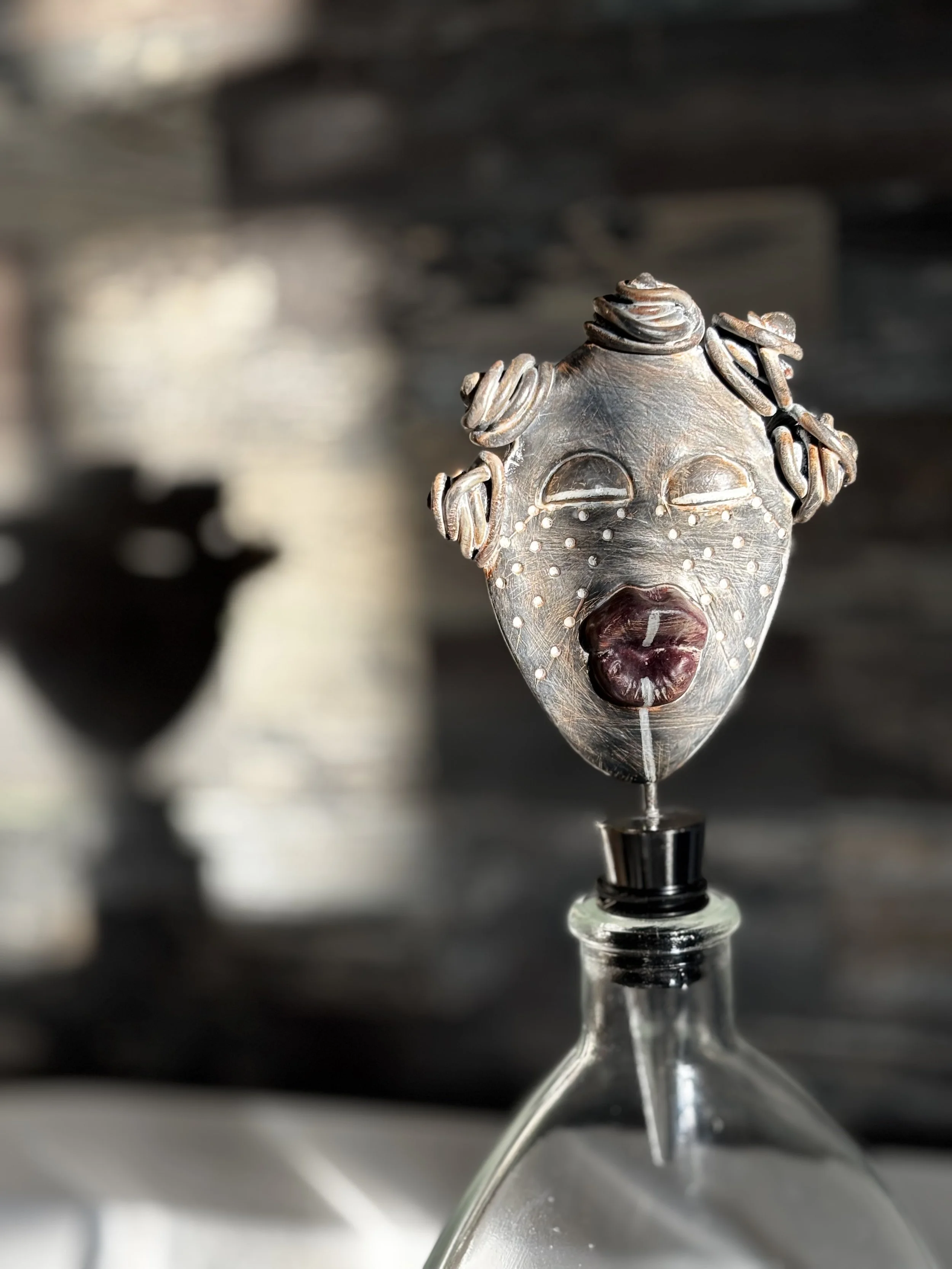 Sculpture is handmade using polymer and recycled paper clay.
